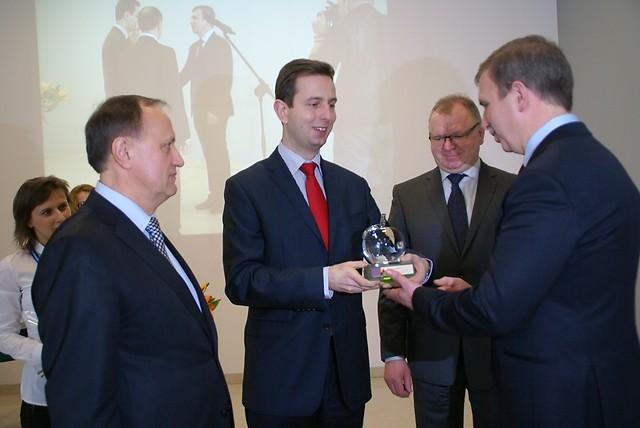 Nagrodę starosty, Kryształowe Jabłko Sądeckie, otrzymał gospodarz dzisiejszej uroczystości, producent bram Andrzej Wiśniowski. Nagrodę odebrał dyrektor eksportu w firmie Wiśniowski i zarazem radny powiatowy Wiesław Pióro.