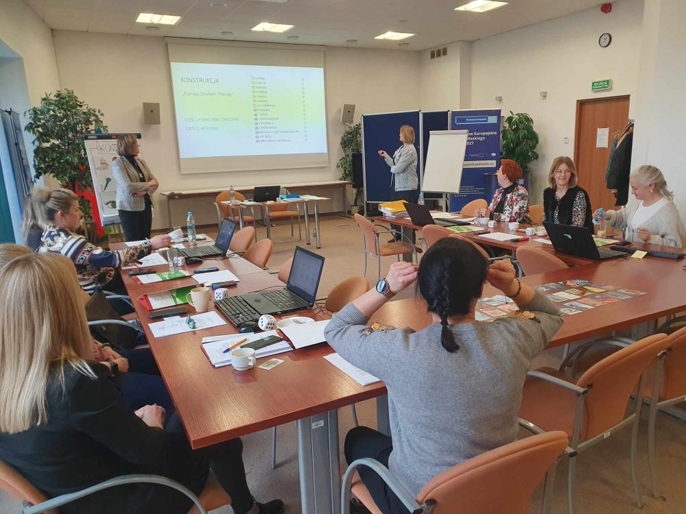 Dyskutowano również o możliwościach wykorzystania tych materiałów oraz o zaletach elastycznej formuły podręcznika, który stanowi źródło inspiracji do rozwoju warsztatu pracy doradcy zawodowego, a także ułatwia dopasowanie scenariuszy zajęć grupowego poradnictwa zawodowego do potrzeb konkretnych grup osób bezrobotnych. W szkoleniu wzięło udział 8 doradców zawodowych z Powiatowych Urzędów Pracy - z Grajewa, Sokółki, Białegostoku, Wysokiego Mazowieckiego.